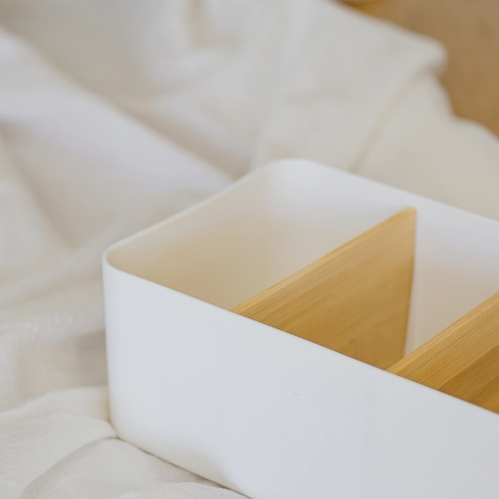 ¿Querés que tu espacio se vea tan ordenado como una góndola de supermercado? La Caja Organizadora de Plástico y Bambú con 4 Divisiones es ese toque funcional y estético que necesitás. Con su diseño moderno y materiales combinados, es perfecta para mantener tus objetos bien organizados y con estilo.