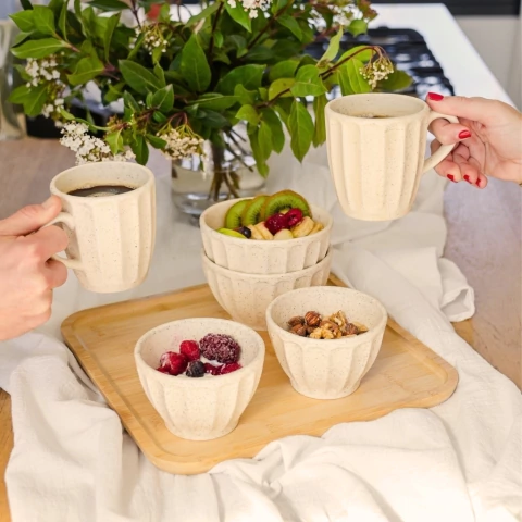 ✔Incluye 4 tazas de 330ml+ 2 bowls chicos de 300ml + 2 bowls XL de 500ml de cerámica (total: 8 piezas).